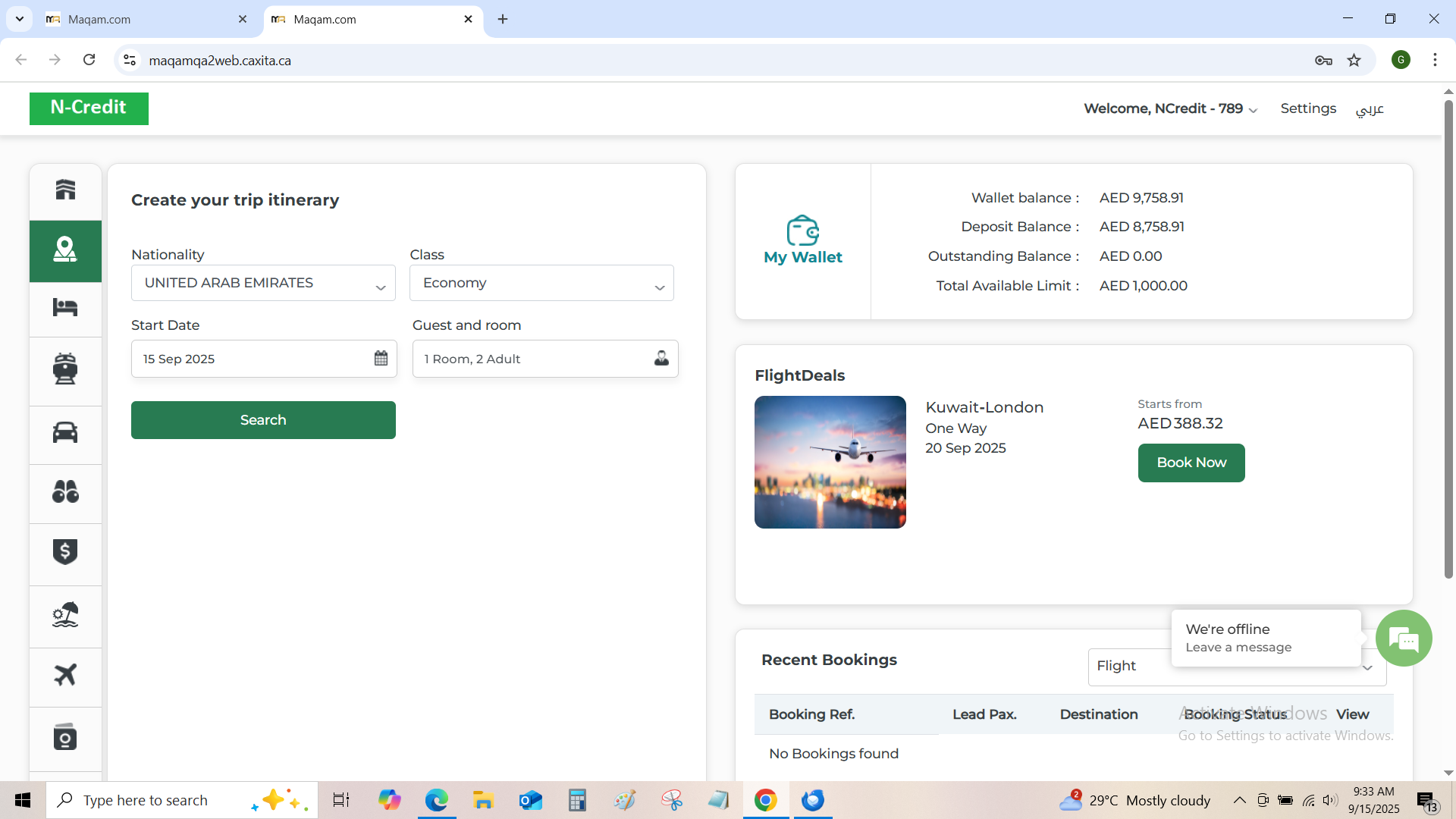 The issue where the "Create your trip itinerary" (Dynamic Package) search panel was missing for the agency login /a has now been fixed