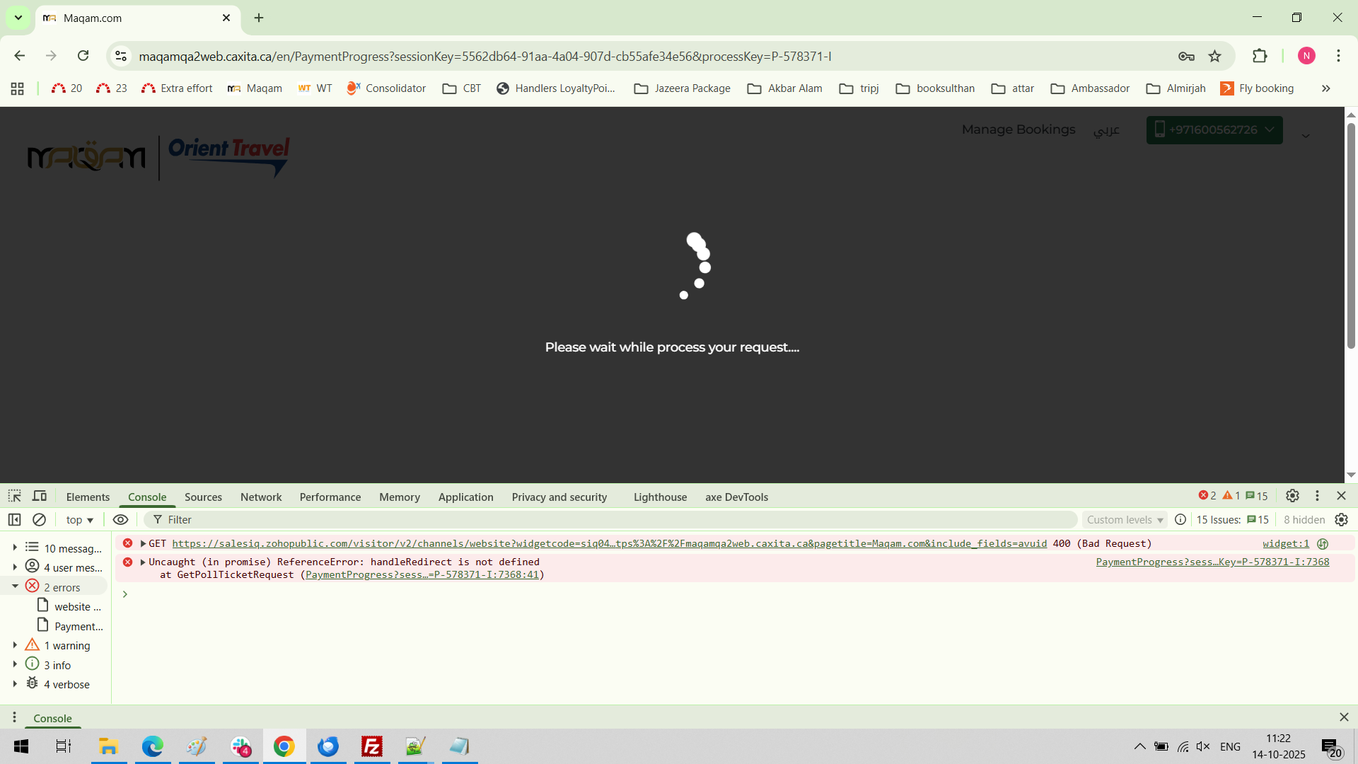 Searched KWI-DXB & selected EK and proceed to ticketing after payment done displaying a continues loader, getting error in console handleRedirect is not defined. Please fix the issue