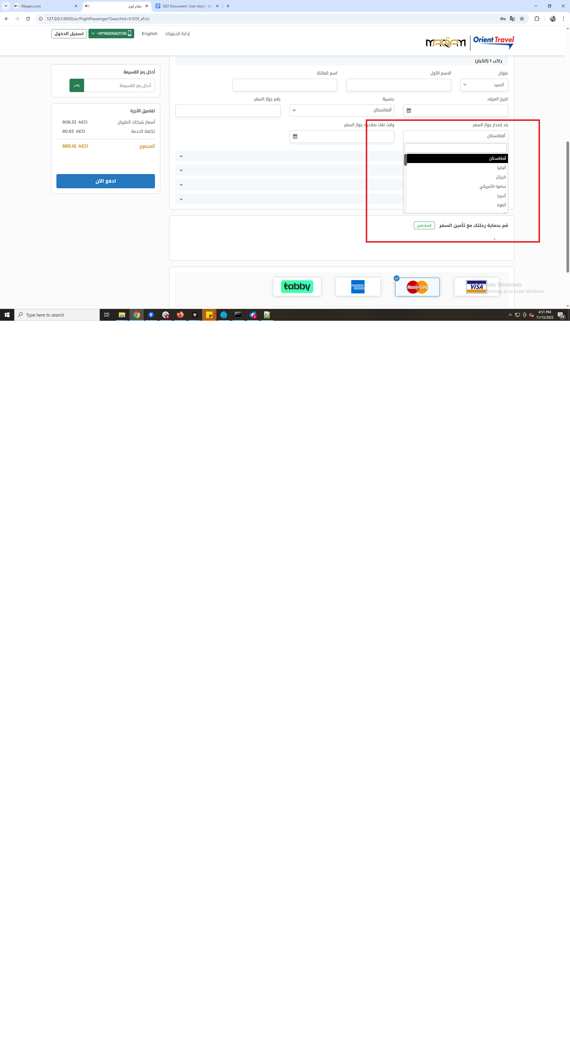 Incorrect Dropdown Behavior on Passenger Details Page (Arabic Language).