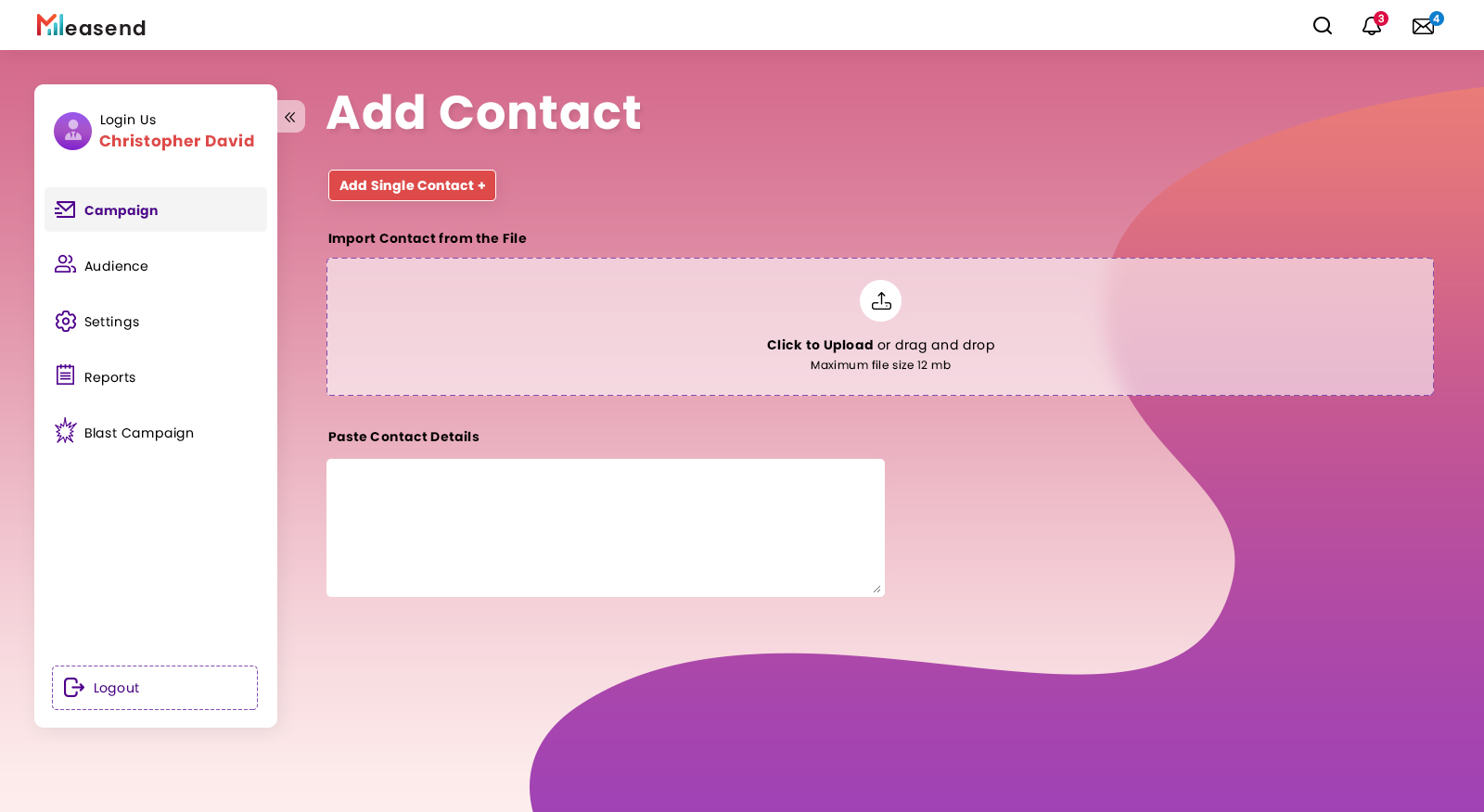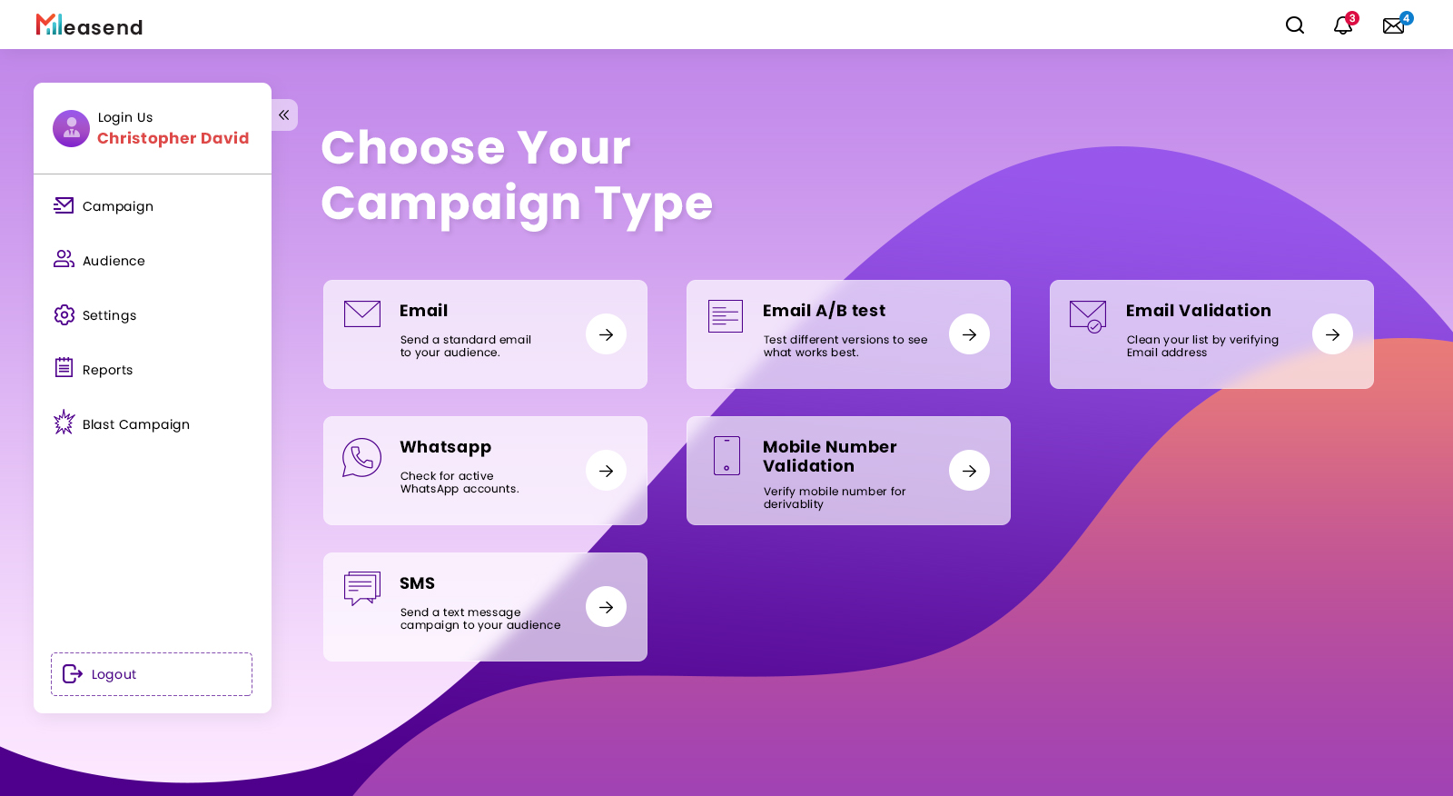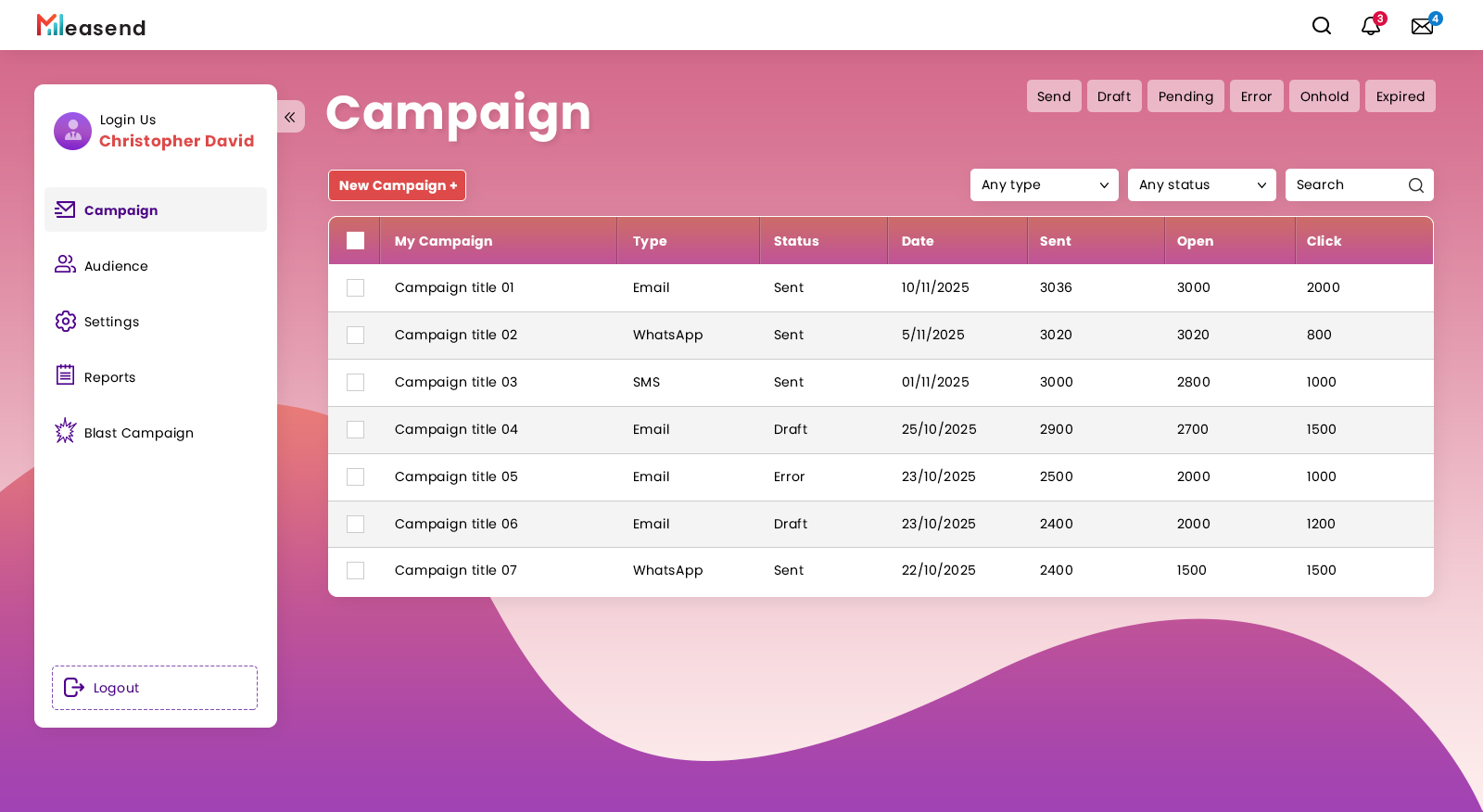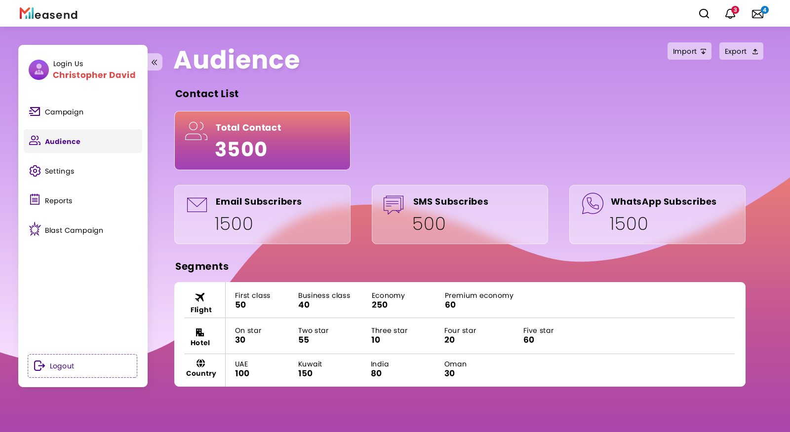 "MeaSend" dashboard design