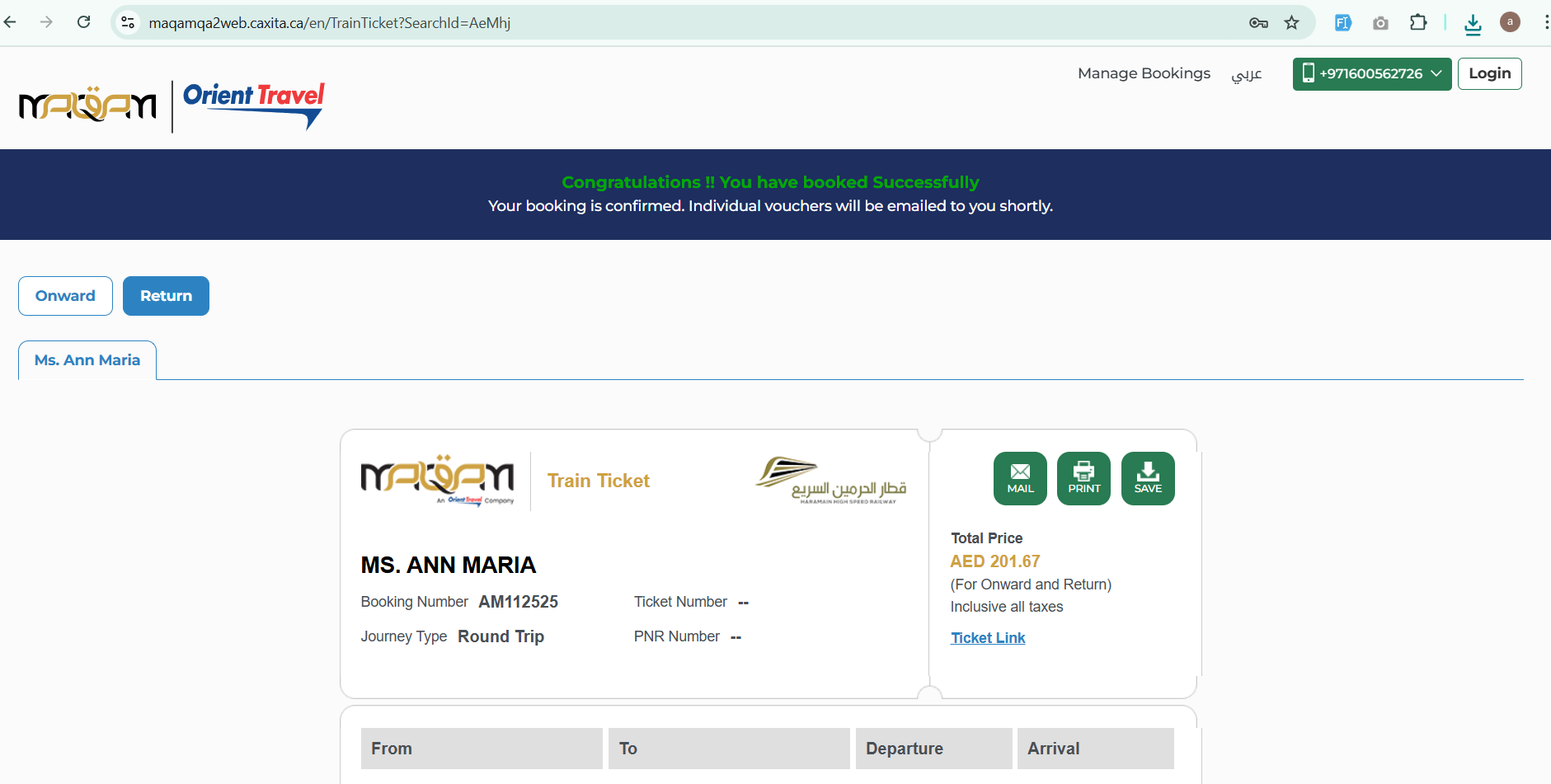 1.Currently, users must select each segment (Onward/Return) separately to save or print the tickets. There should be a single-click option to Save All or Print All tickets together.