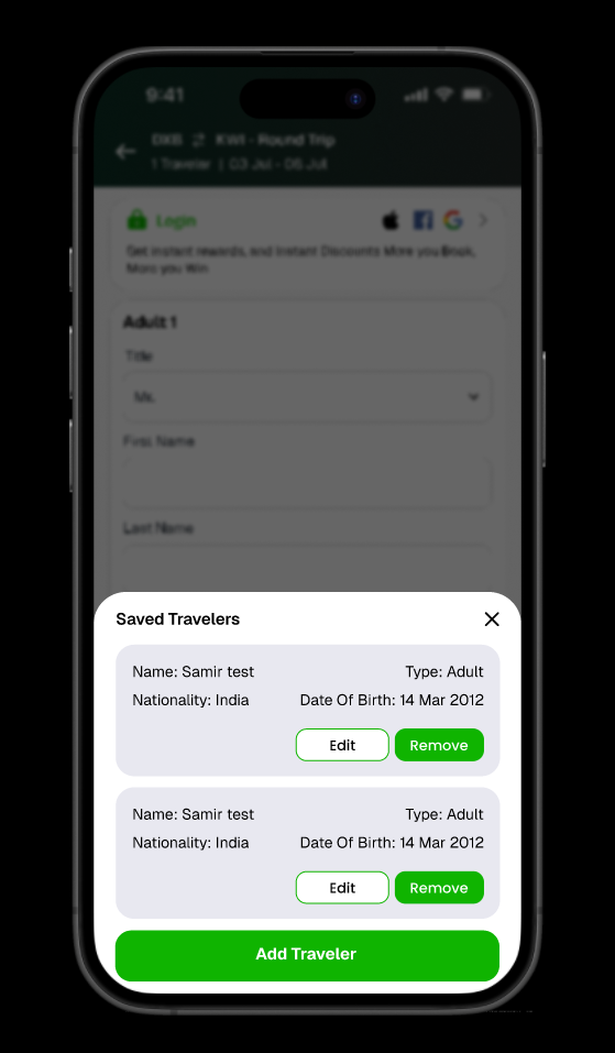 7.show "View Traveler" option in pax page for login users - to select the passengers added via 'add traveler' under my booking