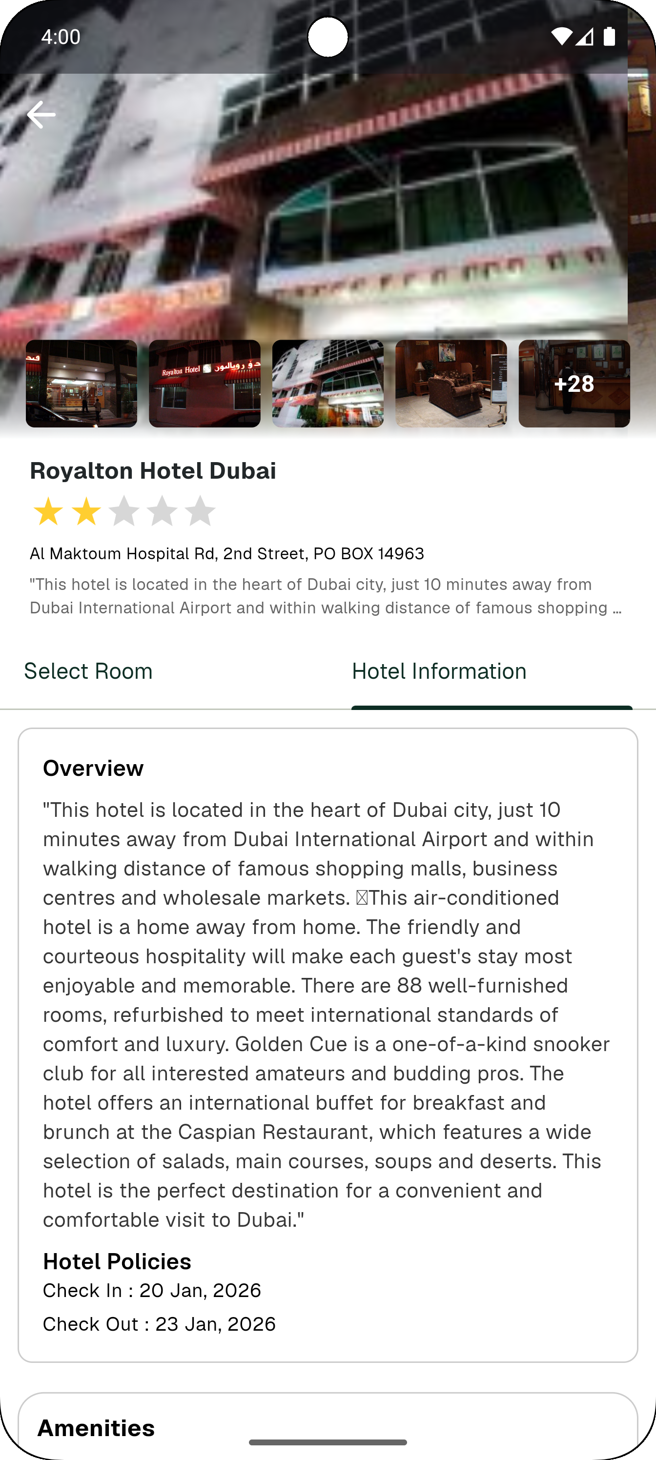 Hotel Details Screen Design and Functionalities are added . Details screen Hotel information section added