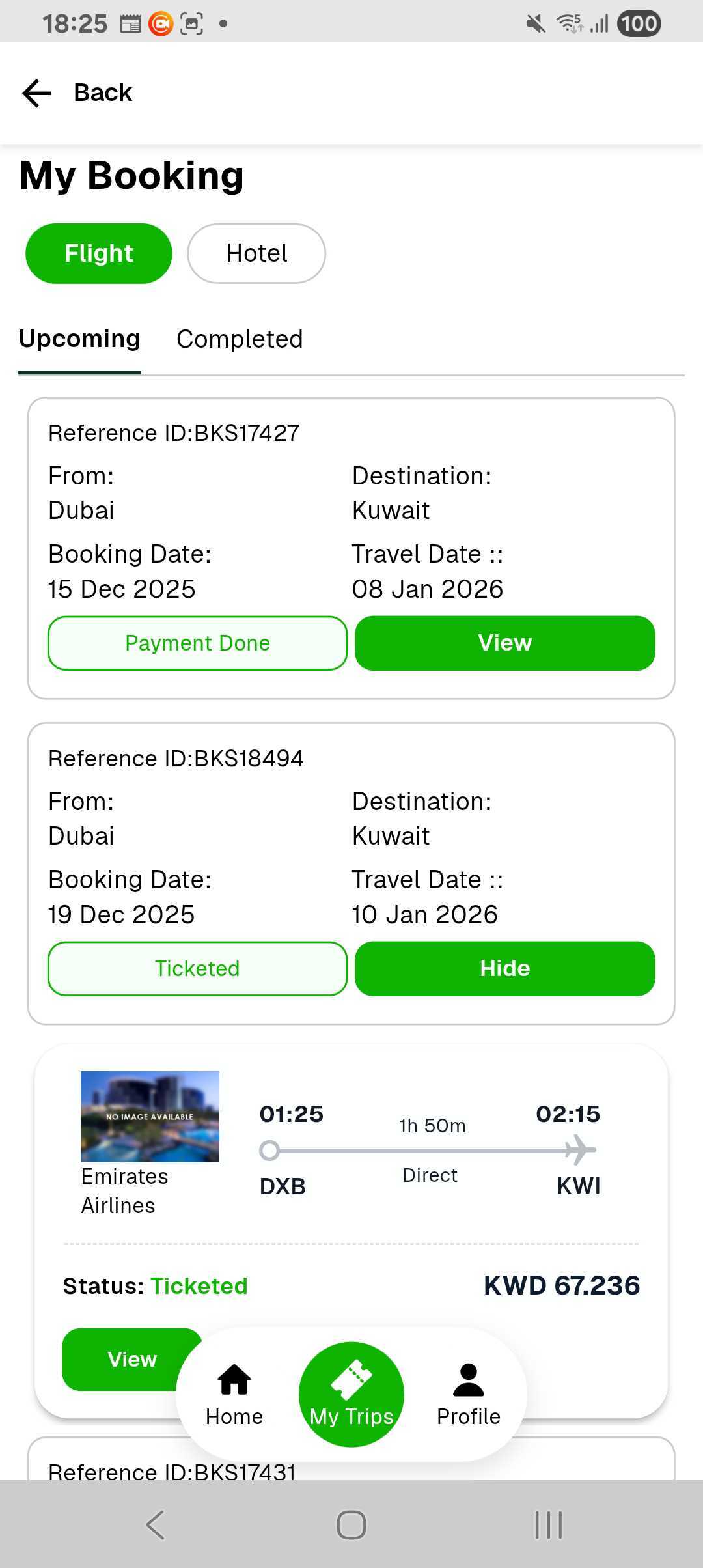 Upcoming booking
