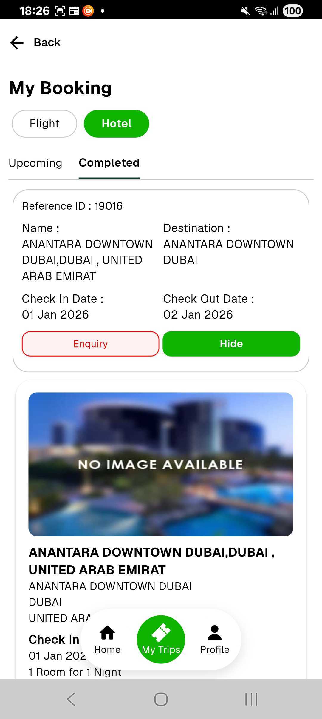 Completed booking.