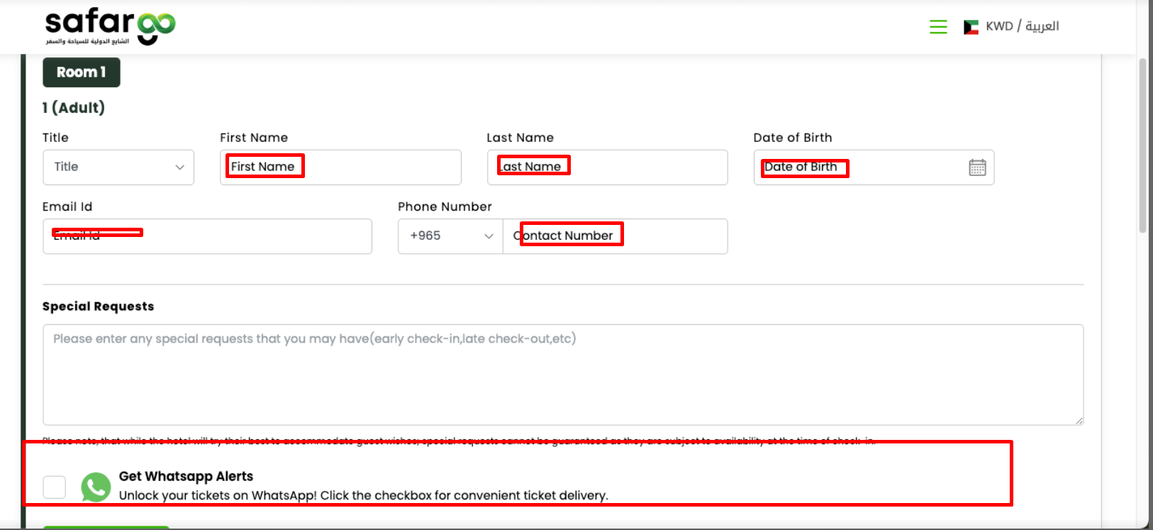 2. merge whatsapp checkbox below pax details not as two separate sections - (refer web)