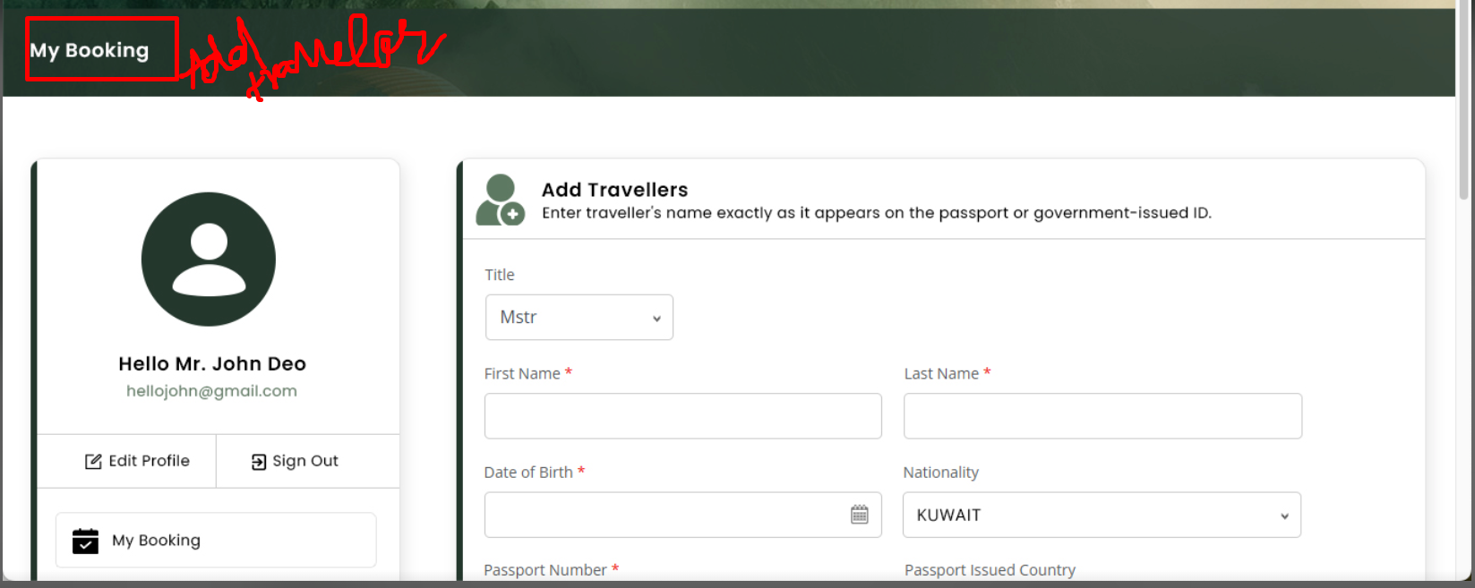5. add traveller form