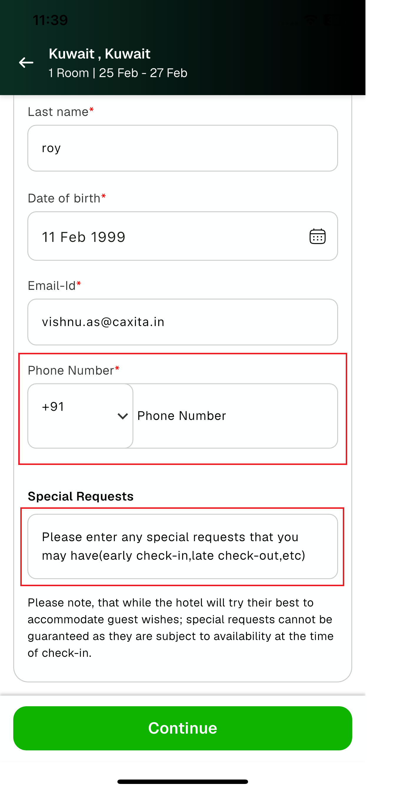 1. Searched a city in hotel module selected a hotel module and went up to PAX page. In pax page, Phone number section is having an alignment issue. Please find the attached screen shot for reference and fix this issue. make the Phone number entering section as per client approved Figma design.