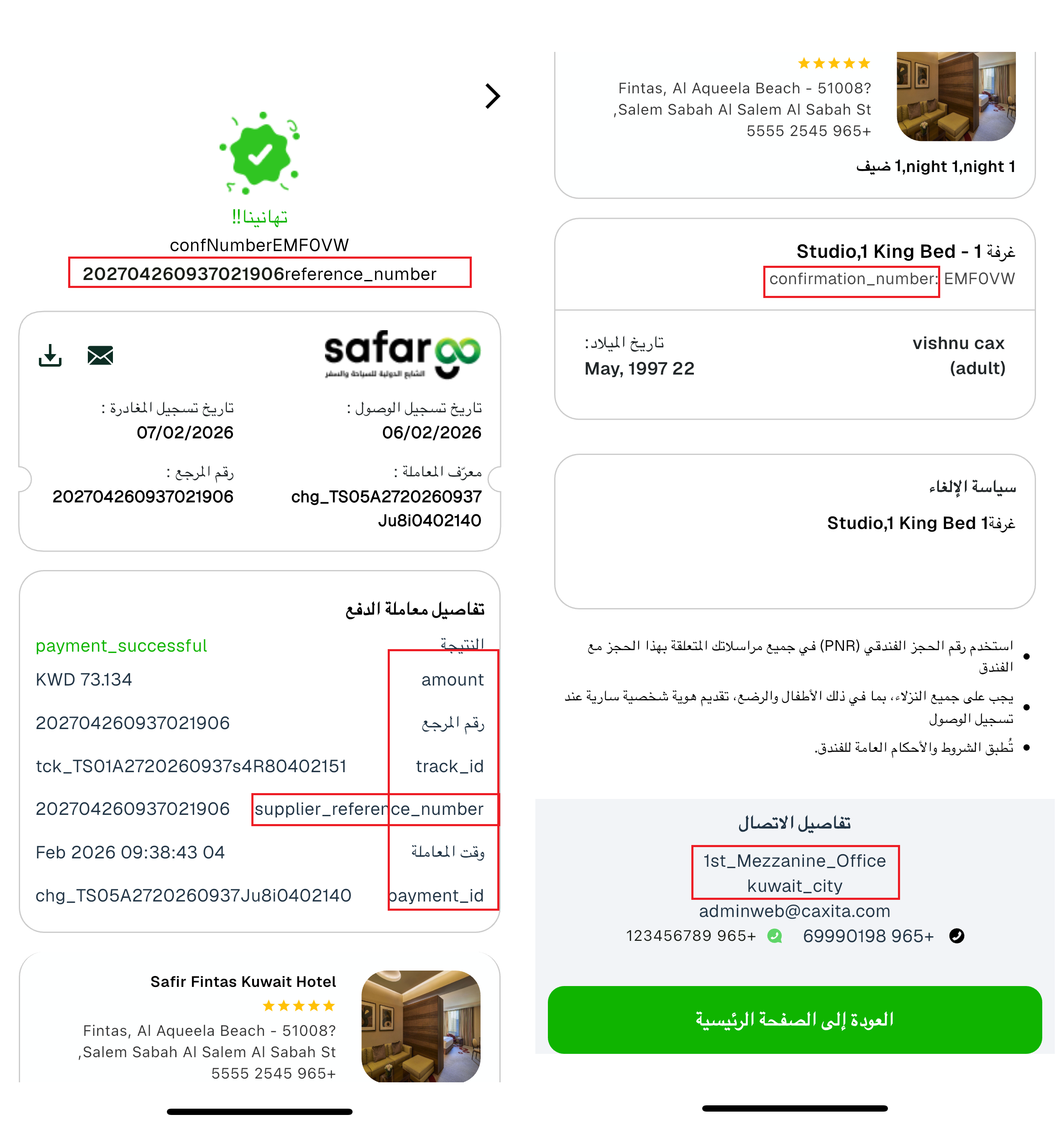 Searched a hotel in Arabic and went up to voucher, in voucher please fix this resource format showing issues and show the texts in Arabic content. Attaching screen shot for reference.